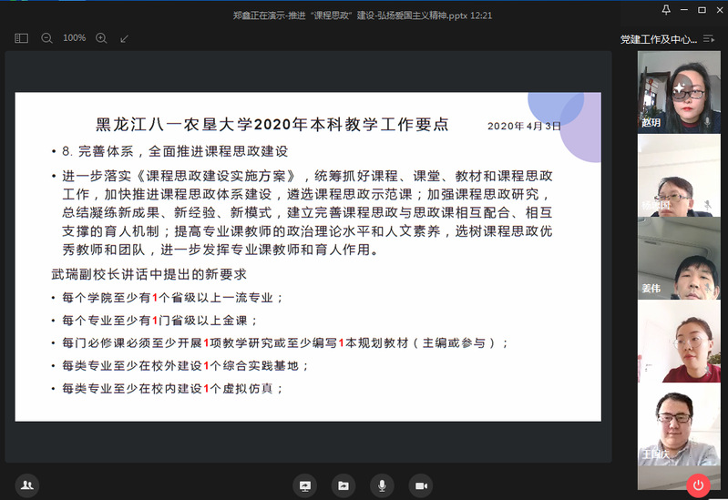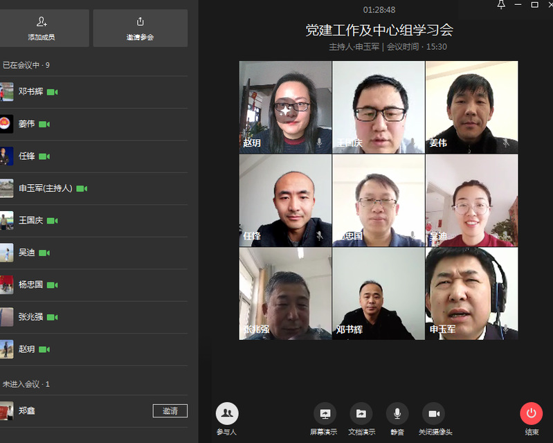 4月8日下午,我院召开理论学习二级中心组第二次视频学习会及党建工作会,党总支委员、各党支部书记参会,共计10人。