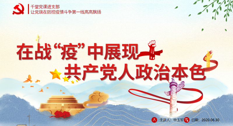 为庆祝中国共产党成立99周年,按照《关于在常态化疫情防控中持续发挥基层党组织的党员作用的通知》的要求,6月30日下午,学院党总支书记申玉军在线上平台围绕“战‘疫’中展现中国共产党人政治本色”这一主题,为所在党支部上了一堂精彩的专题党课。