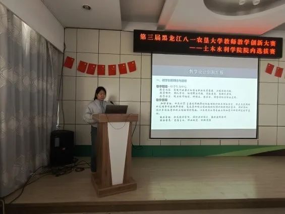 郑鑫副院长主持活动,介绍了比赛流程及规则。比赛分三个环节进行:第一环节,参赛教师结合课程规范与教学实践,用PPT 形式进行15分钟教学设计创新汇报;第二个环节,参赛教师进行20分钟的现场课堂教学;第三个环节,专家评委对参赛教师的汇报及授课进行点评,并提出意见和建议。评委按照教务处下发的《关于举办第三届黑龙江八一农垦大学教师教学创新大赛暨第三届黑龙江省高校教师教学创新大赛选拔赛的通知》要求,分三部分进行评分,分别为课堂教学评分、教学创新成果报告评分、教学设计创新汇报评分。