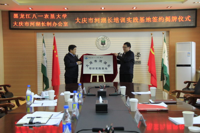 3月7日,我校与大庆市河湖长制办公室共建大庆市河湖长培训实践基地签约揭牌仪式圆满落幕。校长郑喜群与副市长、市河湖长制办公室主任杨世志共同揭牌,副校长崔卫国参加。