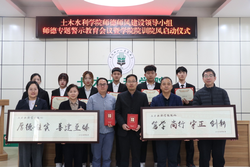 会后进行了学院院训院风启动仪式,并对征集过程中做出突出贡献的师生颁发荣誉证书,给予奖励。