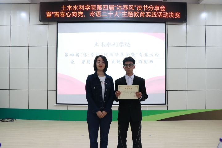 为深入学习贯彻落实党的二十大精神,引导同学们自主阅读与思考,学院于4月16日15:00在310会议室举办第四届“沐·春风”读书分享会暨“青春心向党 寄语二十大”主题实践教育活动。学院副处级辅导员吴迪、辅导员路之阳出席活动并担任评委。
