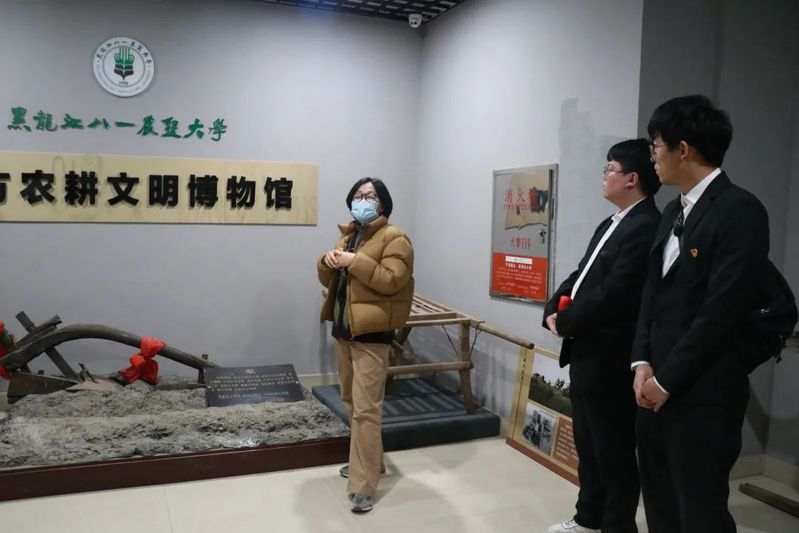 在农耕文明博物馆里,讲解员巧妙运用图片、文字、实物、场景再现等表现手段,将农耕源流、农耕器具、农耕风貌等有关农业的各种元素汇集起来,全方位勾画出北方农耕文化的全景图,展示农耕文明向现代农业文明转变的历史节点。学生党员们通过观看馆藏文物的展示,深受教育,收获颇多,不仅得到了农耕文化的熏陶和馆内收藏艺术作品的感染和享受,更近距离接触到农耕文明、认识传统农耕文化。