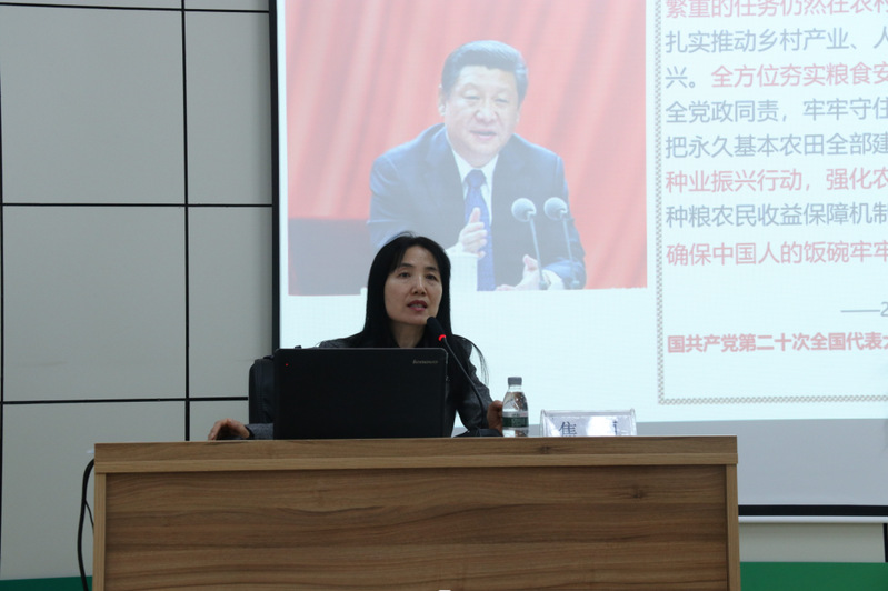 4月26日下午,金沙集团1862cc成色举办“学习党的二十大 知农爱农二十讲”专题宣讲会,邀请马克思主义学院教师焦丽教授作专题报告。学院领导班子成员及师生代表60余人参加活动。