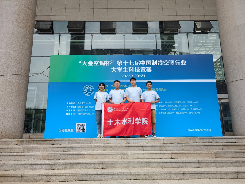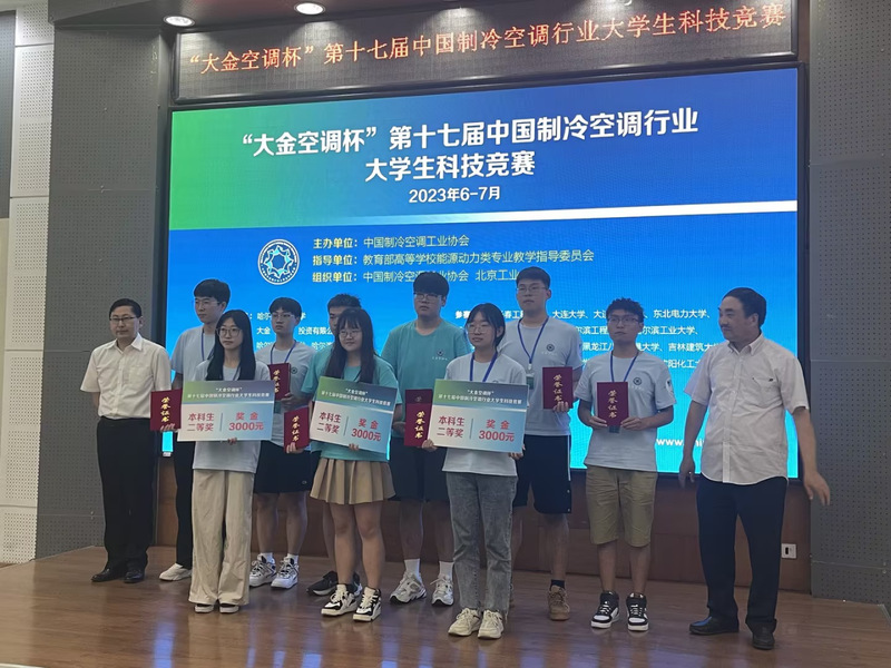 2023年7月20日至21日,“大金空调杯”第十七届中国制冷空调行业大学生科技竞赛(东北赛区决赛点)在哈尔滨工业大学举行,来自东北地区的17所知名高校代表队参赛。我校金沙集团1862cc成色3名本科生经过选拔组成代表队参赛,在郭胜杰、汝林两位老师指导下,获得竞赛二等奖,总分第四名的好成绩。