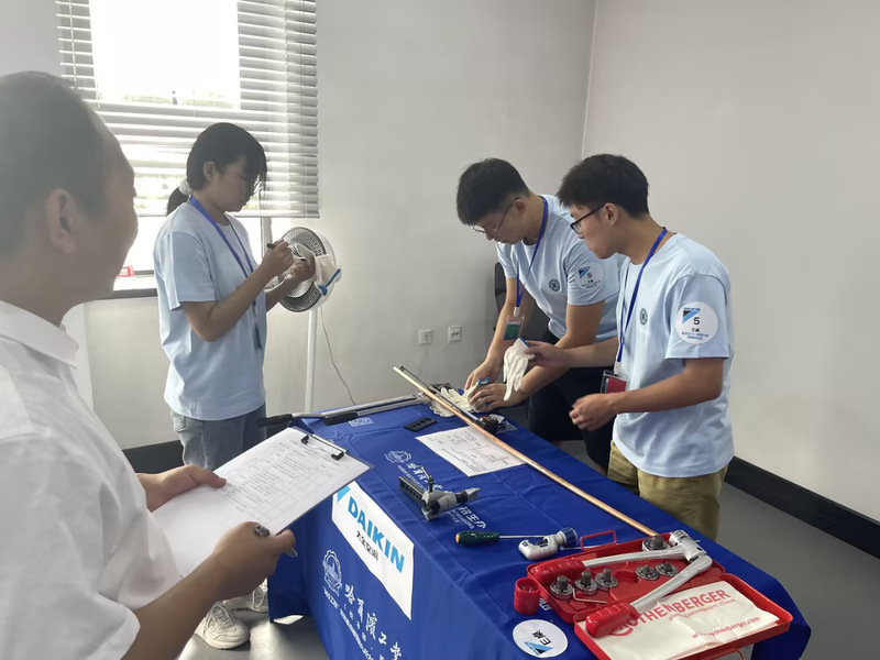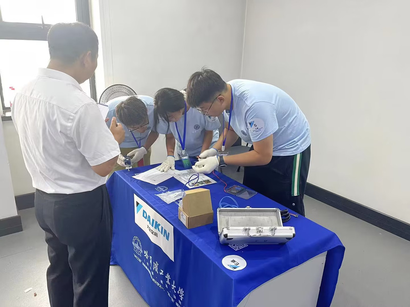 中国制冷空调行业大学生科技竞赛是面向大学生和研究生的具有社会公益属性的群众性科技活动。目的在于助力推动高校能源动力类建筑环境与能源应用工程类学科课程体系和内容的创新改革,协助高等学校实施素质教育为宗旨,致力于宣传和引导广大青年学生踊跃参加课外科技活动,本次比赛由中国制冷空调工业协会主办,教育部高等学校能源动力类专业教学指导委员会指导,中国制冷空调工业协会、北京工业大学组织,哈尔滨工业大学承办,大金(中国)投资有限公司冠名协办。本次竞赛以《绿色和数字化的制冷空调技术》为创新设计主题,赛制内容包括创新设计作品答辩、团队实践技能操作、知识竞答三部分,总得分由竞赛组委会评审专家组根据各个阶段的打分合计而成。