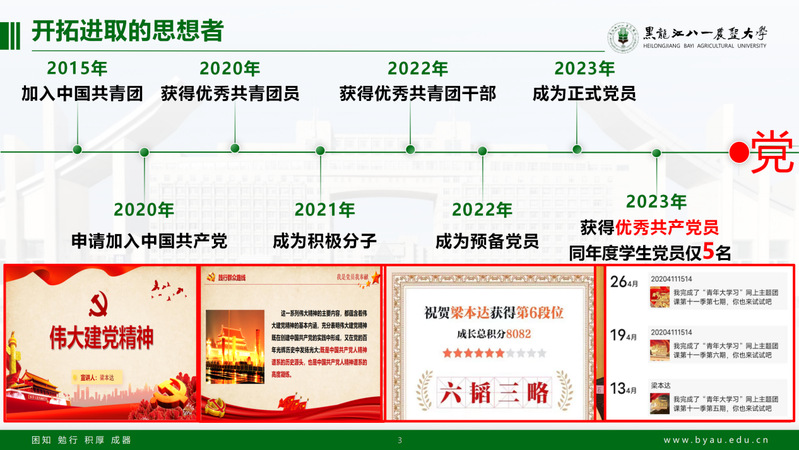 从团员到党员,他一路成长,一路收获。在按时进行每周的青年大学习之外他还通过学习强国平台加强自身学习,目前平台积分已经累计8369分。在观看学习《党课开始啦·二十大代表讲二十大》精品党课中,学习党代表始终不忘初心、牢记使命,时时刻刻为党和人民的事业奋斗前行,始终与人民同甘共苦、团结奋斗的精神。