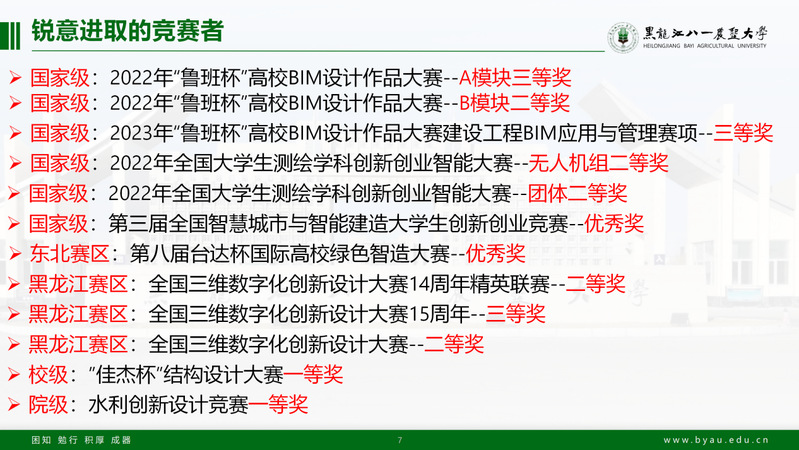 在2022年鲁班杯高校BIM设计作品大赛中斩获二等奖,三等奖各一项,并且参加全国三维数字化设计大赛获得两项二等奖。除此之外他还作为BIM学习小组负责人带领团队多次参加国家级、省级学科竞赛荣获奖励十余项。