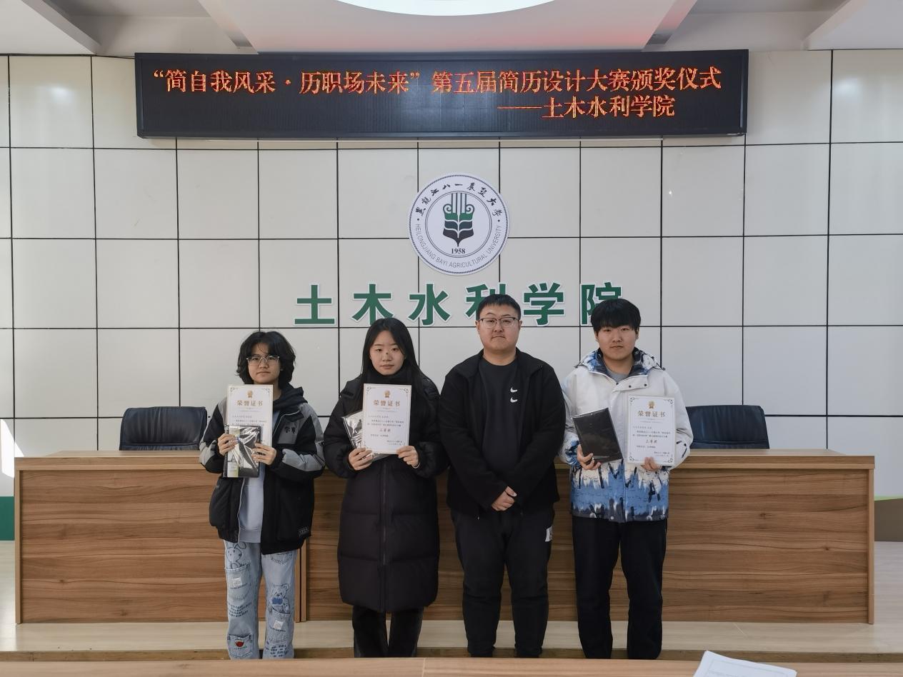 为让同学们对自己有更全面的定位认识,掌握求职简历设计方法,增强就业竞争力,为求职和未来职场发展做好准备,学校举办“简自我风采 历职场未来”第五届简历设计大赛,我院9名学生获奖,学院于12月11日在土木楼310举办颁奖仪式,就业辅导员路之阳出席并为获奖同学颁奖。