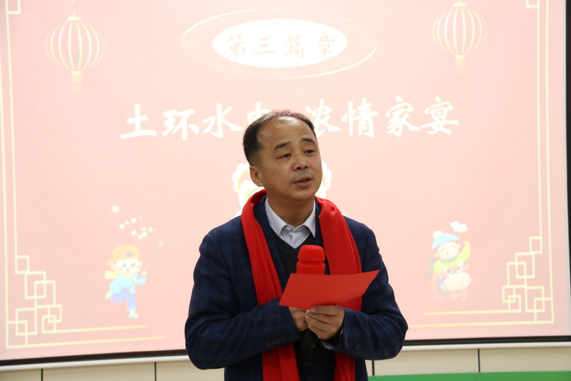 邓书辉致辞,向过去的一年在教学、科研、社会服务等方面做出突出贡献的老师以及共同经历挑战和困难,但始终坚定信念,勇往直前的全体教师致以最崇高的敬意和最衷心的感谢!并寄语全院师生:“新的一年希望全院师生要进一步加强对外合作与交流,拓宽视野,增强自身竞争力,以更加开放的姿态、更加务实的作风、更加创新的思维,奋力开创学院事业发展的新局面。”