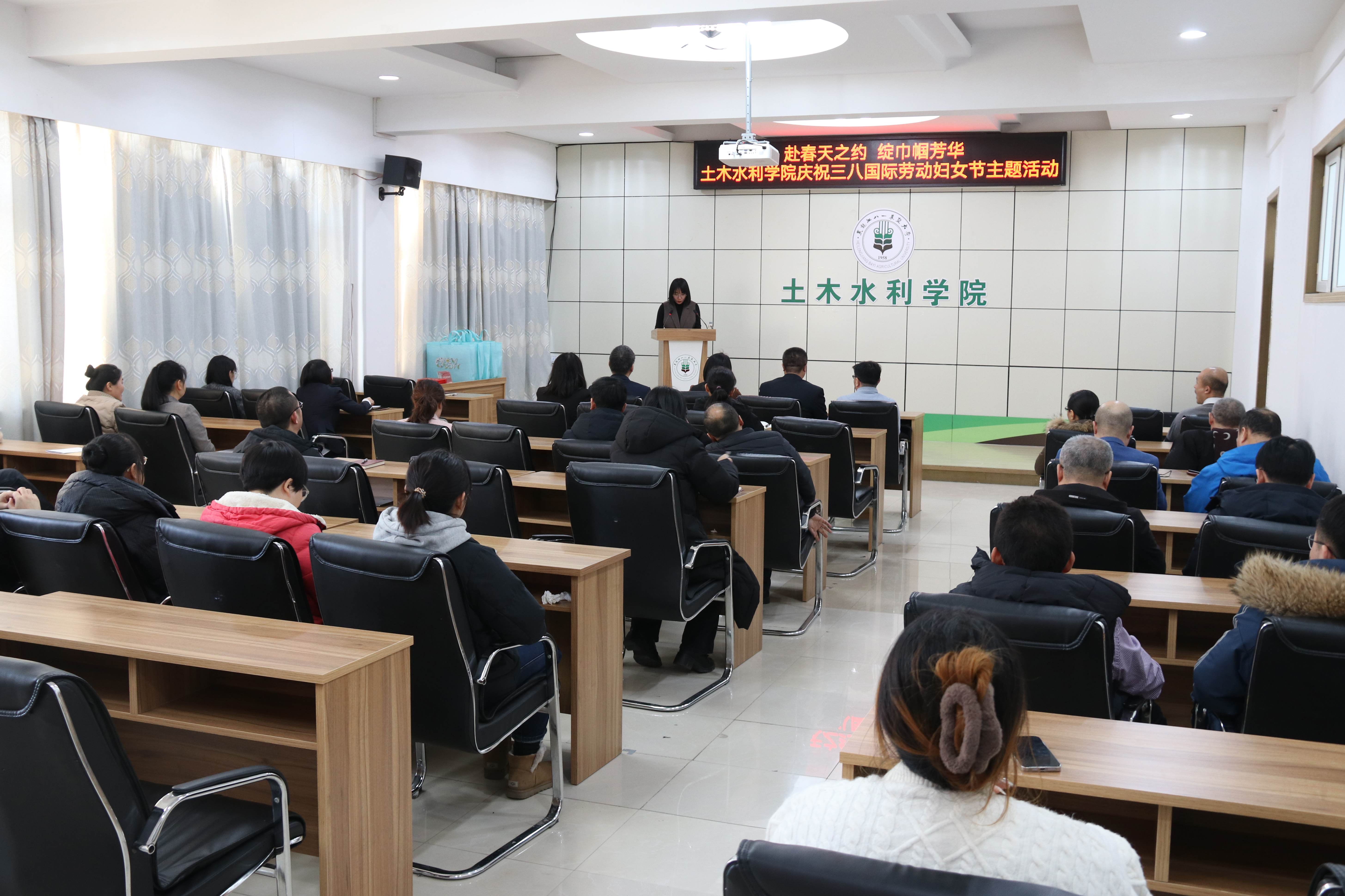 院长郑鑫在致辞中向全体女教工致以节日的问候和美好的祝福,对学院女教职工为学院发展做出的贡献给予充分肯定,激励广大女教工继续发扬王泰恩教授的创业精神,立德树人,笃行不怠,各自岗位上争先创优,积极为学院发展建设贡献智慧和力量。