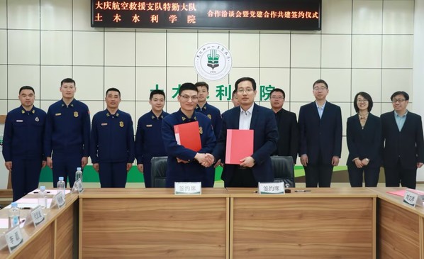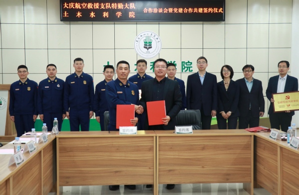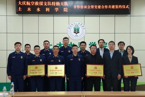 随后,学院党委与大庆航空救援支队特勤大队党委、学院教工一支部与特勤大队一中队支部分别开展党建结对共建签约和授牌。