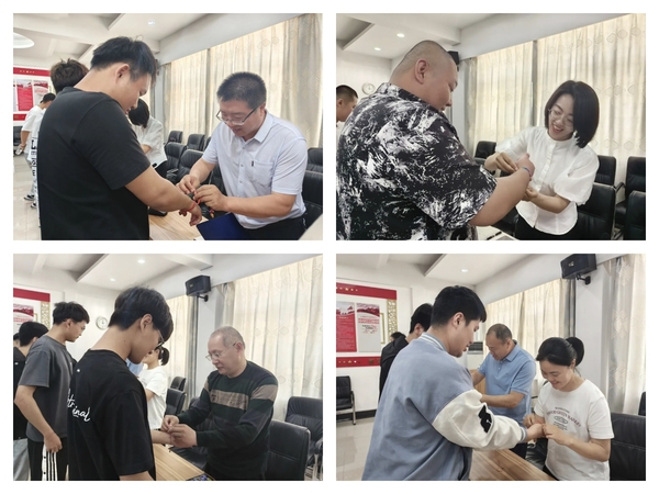 座谈结束后,各位老师亲手为毕业生佩戴五彩绳,将美好的祝愿化作缕缕幽香,伴随即将远行的学子一路成长,随后师生共同包粽子,大家纷纷动手,互相学习,互相帮助,一起包制出一个个精美的粽子。在此过程中,师生们不仅展示了各自的巧手,更增进了彼此之间的友谊和感情。随着粽子的香气渐渐弥漫开来,整个活动现场充满了温馨和欢乐的气氛。大家一边品尝着自己亲手包的粽子,一边畅谈着未来的梦想和计划。