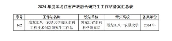 2024年8月1日,黑龙江省教育厅公布《关于备案2024年度黑龙江省产教融合研究生工作站的通知》,我院申报的“黑龙江八一农垦大学寒区水利工程技术创新研究生工作站”成功获批备案。