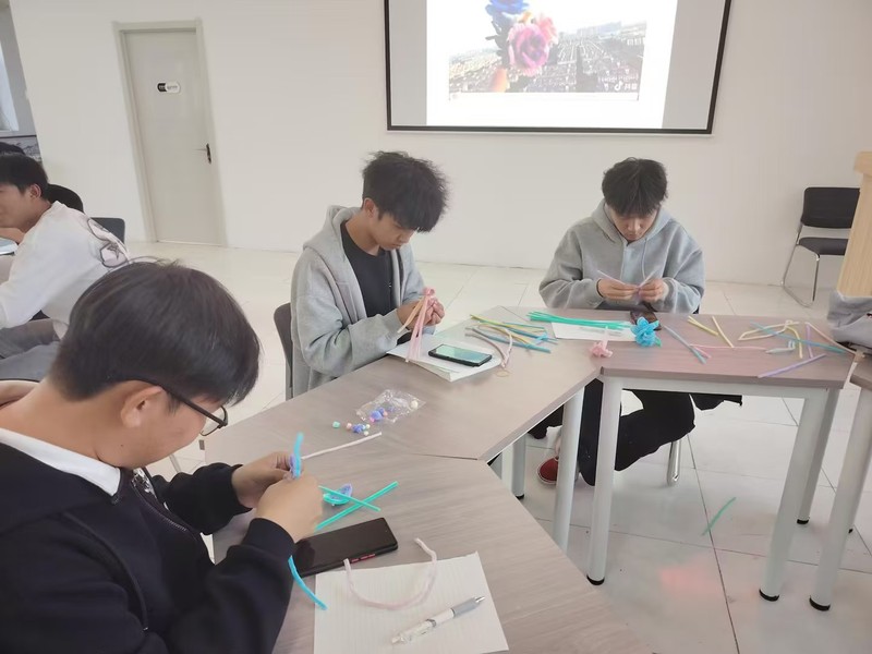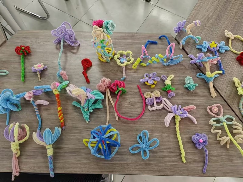 活动开始前,老师为同学们准备了缤纷多彩的扭扭棒和各式各样的模具,使每个人都能愉快地参与其中。接着进行分组创作,这个过程中,大家可以自由发挥,随心所欲地进行创作。随着一双双灵巧之手的巧妙编织,一朵朵生动逼真的扭扭棒花卉悄然绽放,既有娇艳动人的玫瑰,也有清雅脱俗的百合,更有那些小巧精致的野花,它们各自散发着独特的韵味,让人不禁为之赞叹。