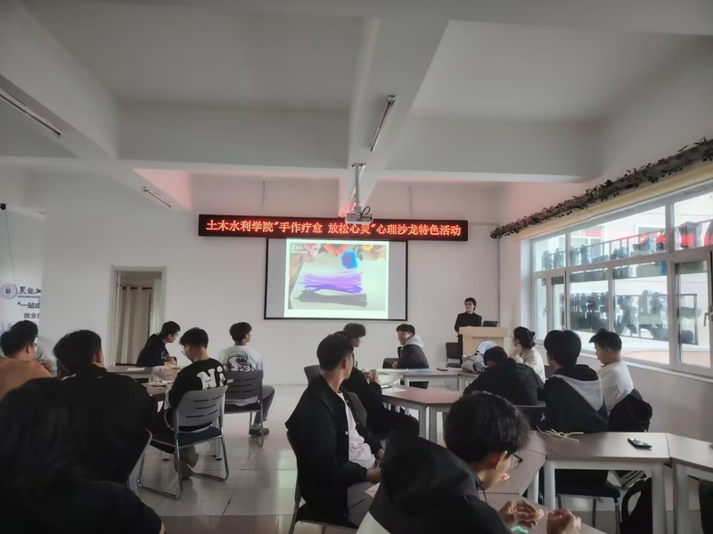 为进一步提升学生心理健康教育意识,培养学生乐观向上的积极心理品质,10月15日,金沙集团1862cc成色在学生公寓10号楼一站式社区成功举办“手作疗愈 放松心灵”心理沙龙特色活动,活动由孙玉梅老师主持,40多名在校生参与。