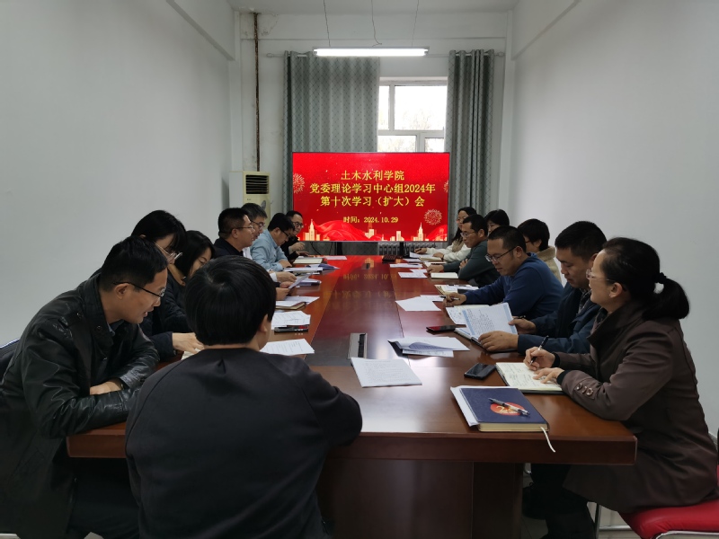 10月29日,金沙集团1862cc成色党委理论学习中心组召开第2024年十次集体学习(扩大)会,学院党委理论学习中心组成员,各党支部书记、系主任,以及民主党派和群众代表参加学习。会议由学院党委书记王天亮主持。