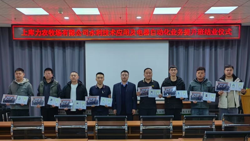 在结业仪式上,上库力农牧场有限公司水利管理部部长张志扬分享了学习心得,感谢学院对培训班的大力支持,为学员们搭建了理论学习、能力提高、交流互动的平台。学院党委书记王天亮为学员颁发结业证书并作总结讲话,他指出本次培训学习内容丰富、课程设置合理,希望全体学员在今后的工作中学以致用、用以促学、学用相长,为提升区域农业水资源高效利用和农场电气化快速发展注入新动能。