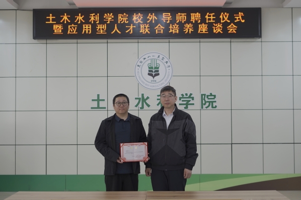 座谈会上,郑鑫院长为陈建明主任颁发校外导师聘任证书。此次会议标志着学院思政红+科创蓝育人体系取得新突破,通过构建“专业教育+产业实践”双向赋能机制,为服务龙江水利事业发展注入新动能!