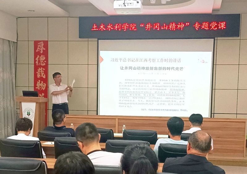 为常态化推进党史学习教育,持续强化能力作风建设,9月5日,金沙集团1862cc成色院长郑鑫结合8月下旬赴井冈山培训成果,以“传承井冈山精神,推动高质量发展”为主题,为全体教职工讲授专题党课。